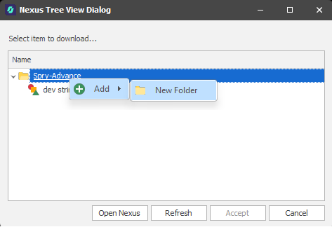 To create a folder, right-click on the Nexus project name and select Add > New Folder.