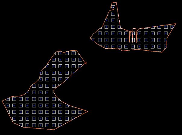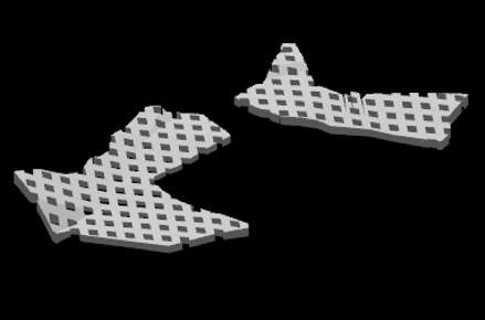 When considered in cross-section relative to the direction of stoping, some stoping methods require the stopes to be generated within the constraints of a regular grid pattern or framework. Advance supports this by allowing you to specify the cross-sectional design requirements relative to a two-dimensional grid pattern, along with the position and orientation of that grid relative to the target ore body. It then projects “tubes” from the cells of the grid into the ore body and cuts these tubes into thin slices, for which the economic values are determined.