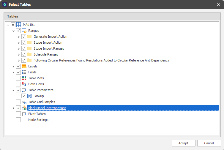 Click Accept to export the table structure to an .xml file that can be imported to another project.