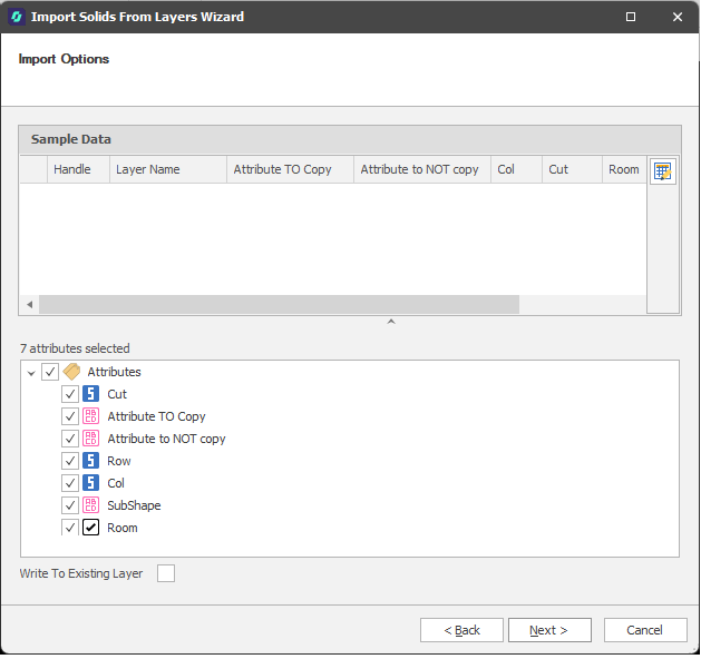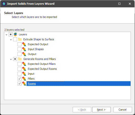 In the Import Solids from Layers wizard, select the layers to import and then click Next.