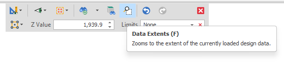 To zoom to the extents of the block model, select Zoom to Data Extents via the Quick Access (Design Panel Commands) toolbar: