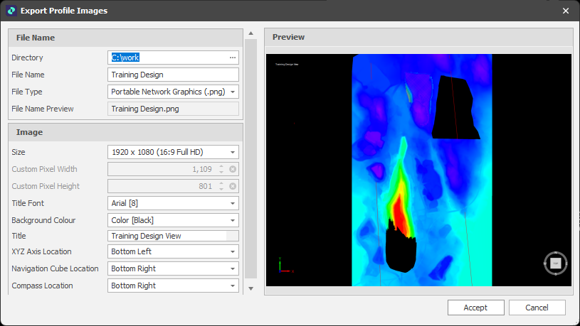 From here you can control the dates, view layout, filename, image type, image content, image size and title of the exported images.