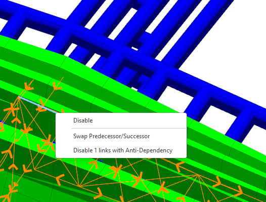 This option is only available on Range dependencies. A range dependency entry has a predecessor range and a successor range. Clicking Swap on a dependency link will swap the predecessor and successor range of the entry that is associated with that link. This option is typically useful when dependency entries have been created in a backwards order. |