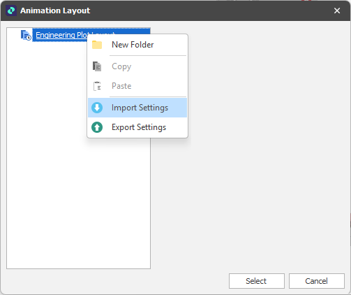 Right-click on the Engineering Plot Layout node and select Import Settings to import an engineering plot layout that was previously exported in XML file format.