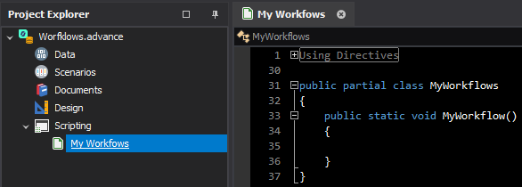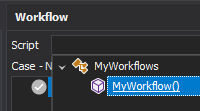 To convert this script into a workflow script we need to add a IWorkflow parameter to the MyWorkflow method. We will call the workflow parameter workflow for simplicity.