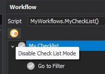 Try adding the above code snippet to the above workflow to see the Checklist mode toggle button appear. The tooltip of the button will display what will happen when the button is clicked.