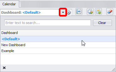 Select the dashboard to display in the Calendar