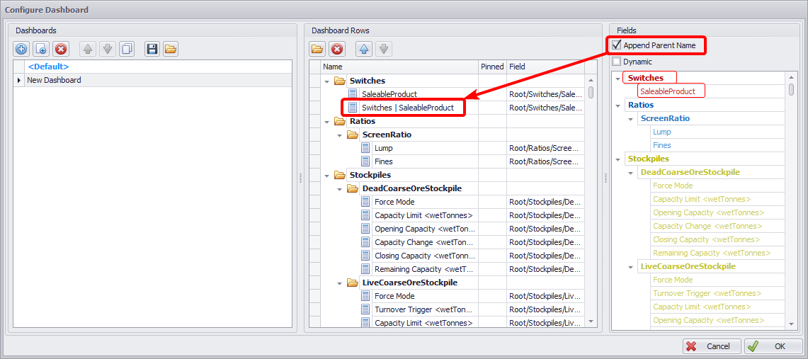 Name of dashboard row with Append Parent Name flag enabled