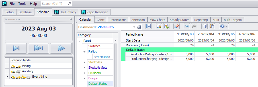 Default rates will not override any parameters set for Drilling and Charging when these activities are being scheduled.