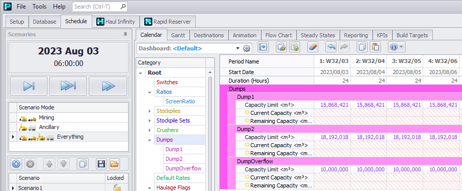 Optionally enter dump limits in the Calendar. Note that dumps automatically detect their own volume, so manually constraining their capacity is rarely required.