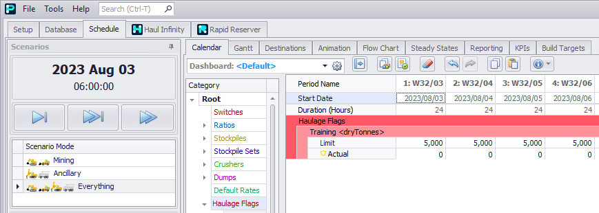 Enter haulage flags by period.