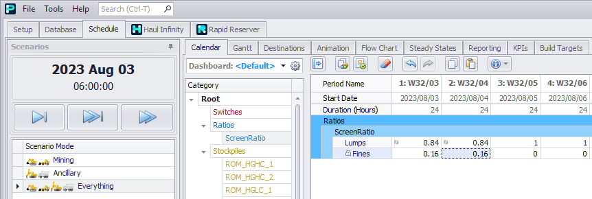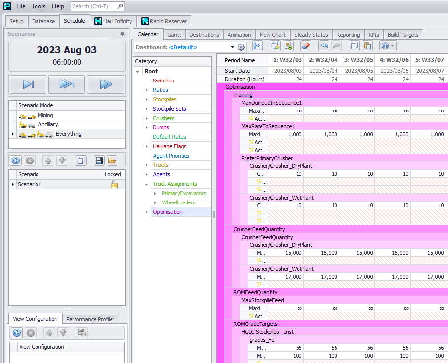 Note that calculating the rate as target tonnes over working hours only works if the crusher is constantly fed. If there are gaps in the feed, you are better off combining a maximum rate with a period constraint.