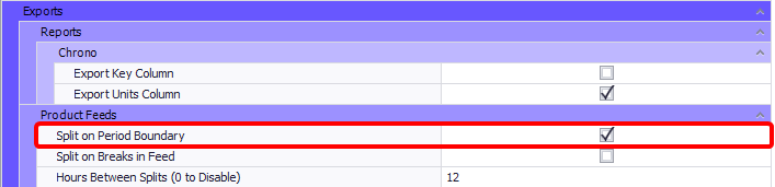 Setup tab > Final Configuration step > Exports field > flag Split on Period Boundary option.