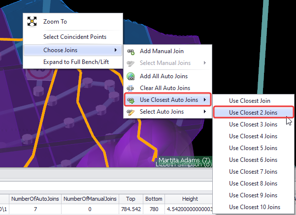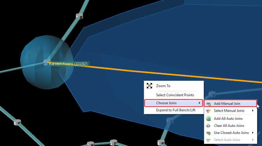 3. When seeing Isolated blocks, you need to make sure that for these blocks there is a ramp that can be used to connect them to the main haul network (you may need to review your network and make sure there is a road at the height of the bench with these blocks, otherwise, draw it using top toolbar tools). 4. Blocks may connect to any road that passes within the auto-join distance of the bench. This allows trucks to "jump the gap" between the bench and a nearby road. To use this function in the top toolbar select Blocks > “Join Interaction Mode".
