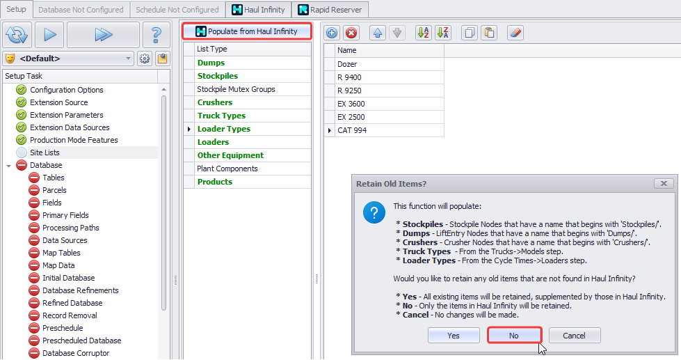 Press Populate from Haul Infinity button and then: