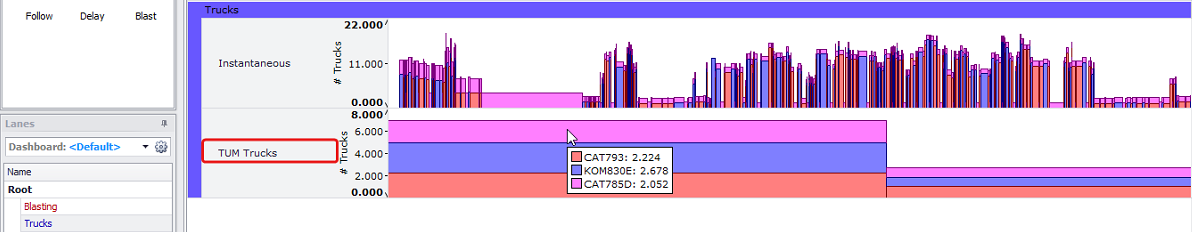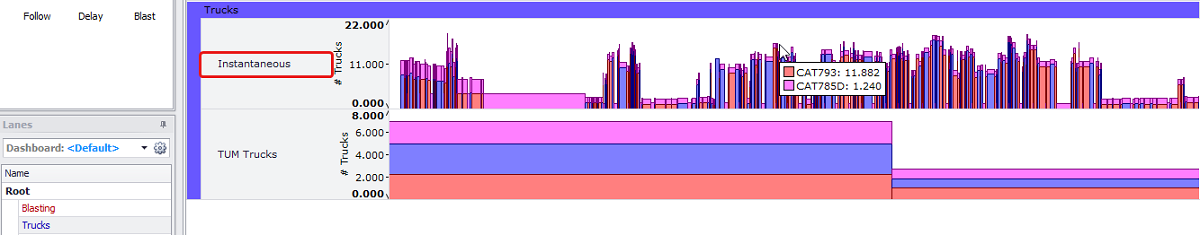 Shows on the “Instantaneous Trucks“ graphs on the Gantt diagram. |