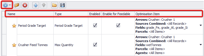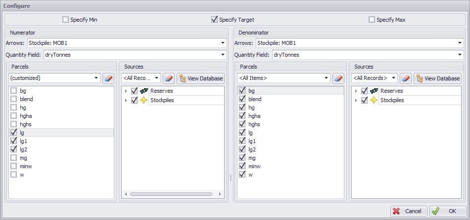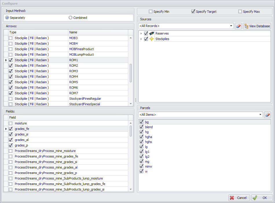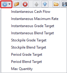 Typically, a destination will be assigned at least one positive cash flow (reward for sending material), as well as several grade targets (penalties for going off-spec). The optimiser then sieves out a selection of blocks that (if possible) yield high rewards and low penalties.