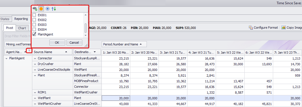 Filter by the “PlantAgent” Agent in the Pivot report to see all material movements it controls:
