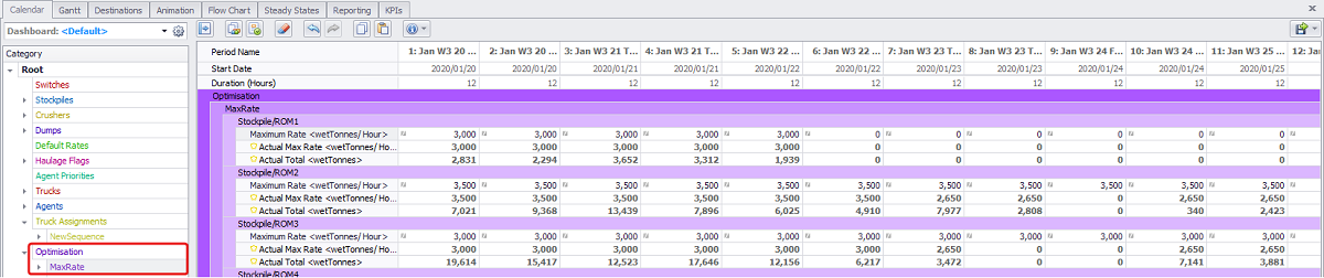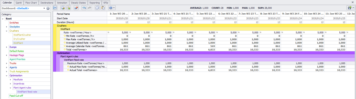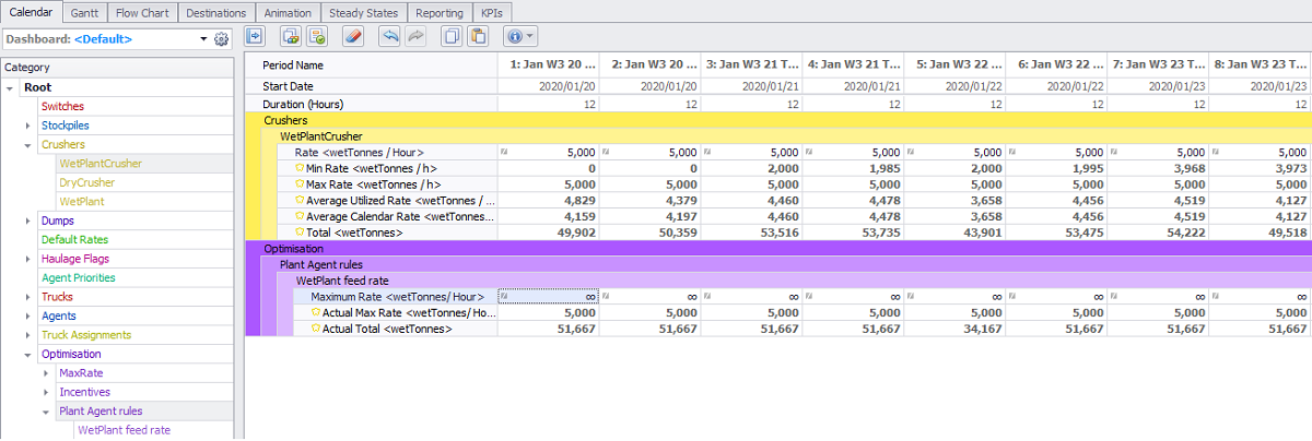 Be careful which the PlantAgent optimisation in the Calendar since it can create bottlenecks if the PlantAgent rate is lower than Crusher downstream. |