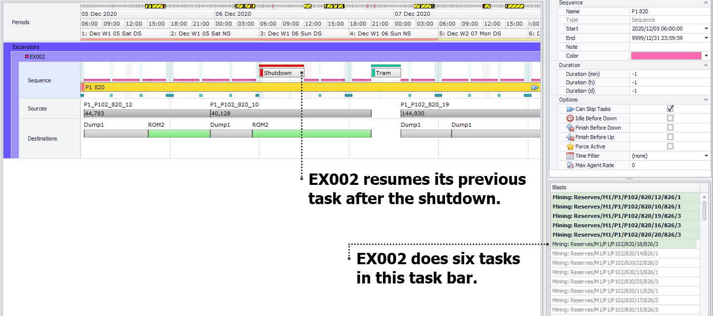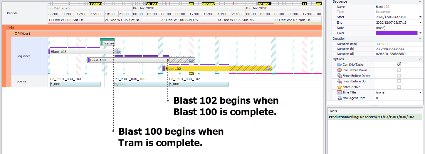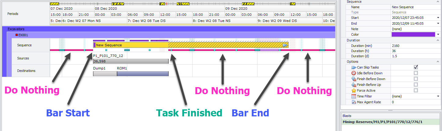 Note: Delay sequences will remain active until they are completed or they reach the end of the sequence bar. They do not follow the normal Gantt chart lane priorities. This is because any delay placed at the end of the sequence needs to be honoured.