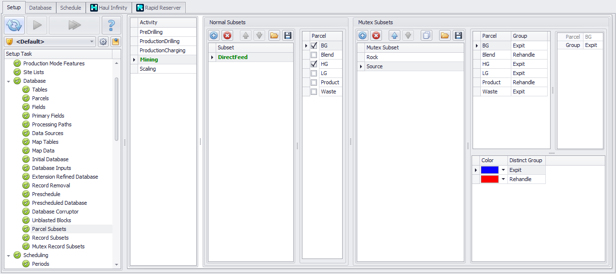 Mutex subset specified in this step will be used in the Final Configuration step to define Haulage Materials.