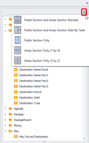 By default “Field Section and Areas Section Stacked” layout is set. You may change it at any time to suit your display preferences.