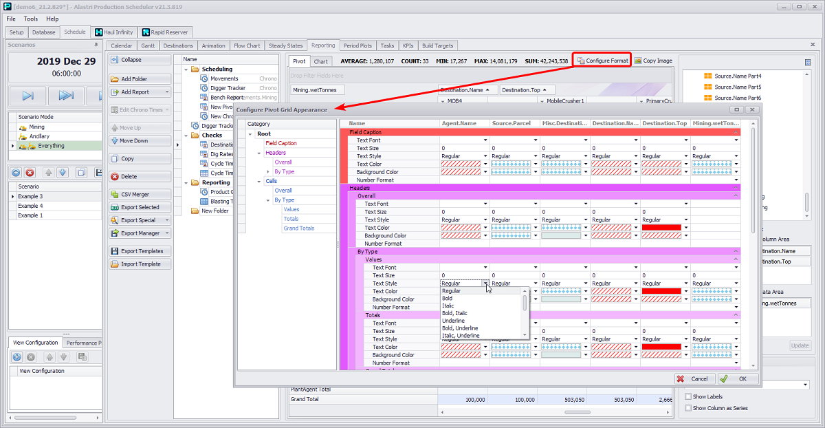 Configure Pivot Grid Appearance window