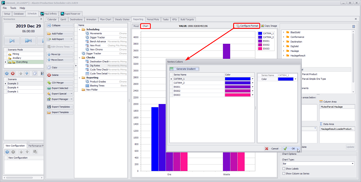 Applying a gradient to the dig rate chart via the Configure Format button
