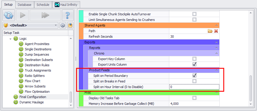 By default, APS will export periods as defined by the Calendar. The Final Configuration step allows users to set the intervals to break up the material feed from the External site to the Central site.