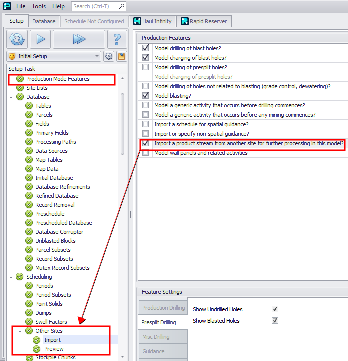The Second Site setup allows users to bring external movements from one or more sources and incorporate them into a Central APS model. This could be used when multiple surface mines and/or underground operations are planned separately but provide joint feed to a common Central Processing Plant.