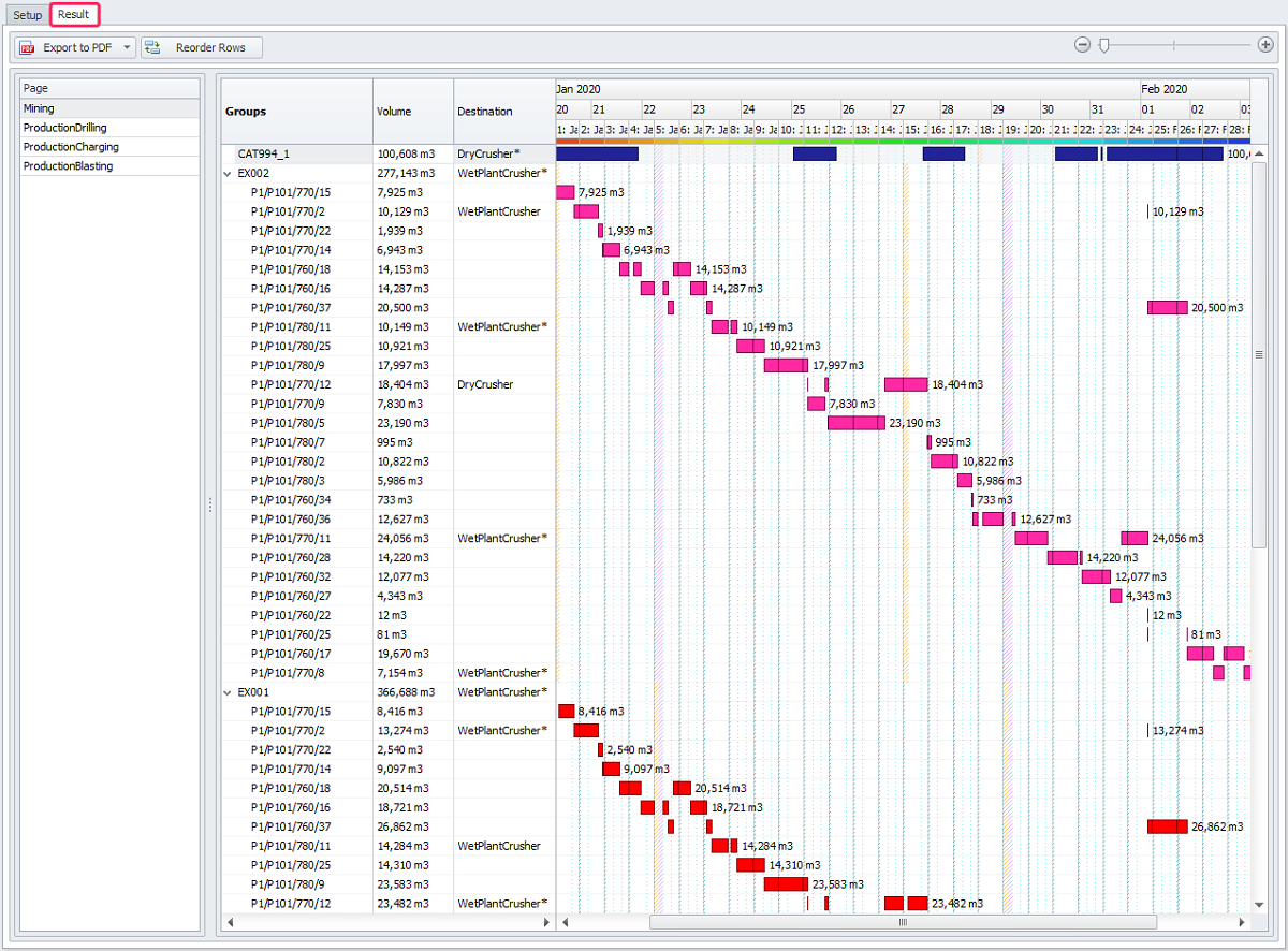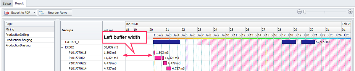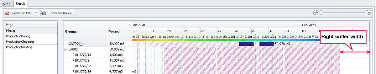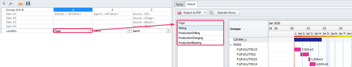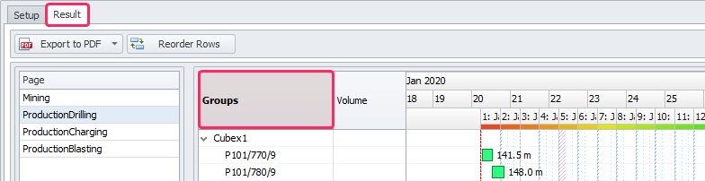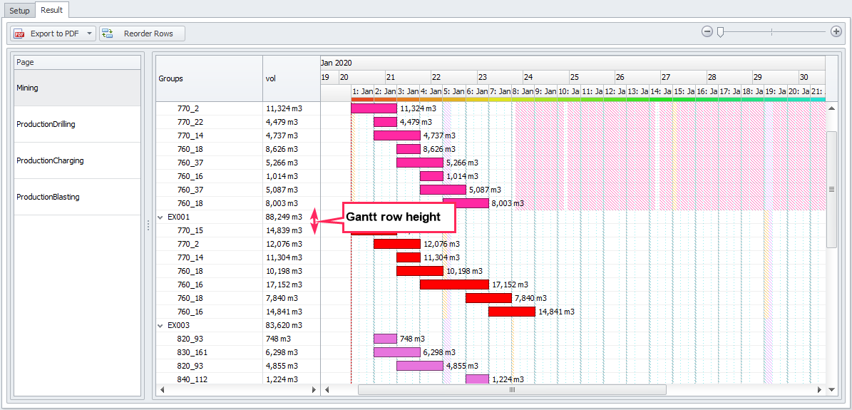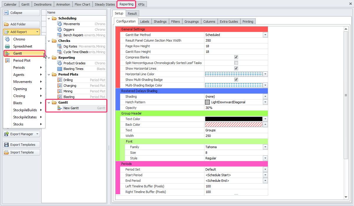 Main setting of Gantt report in the Result tab |