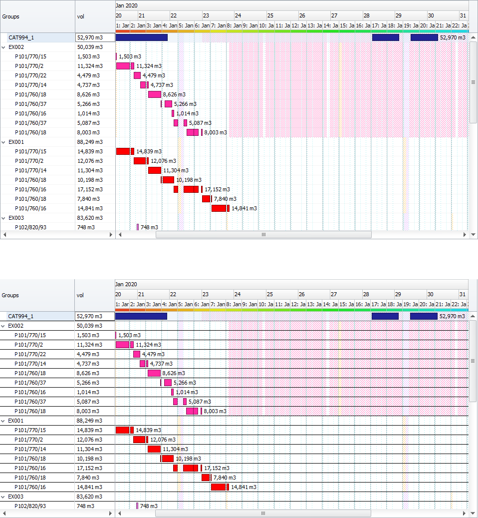 Note that in order to see Rostered delays in the Gantt report, the Agent must be added as Group Option in the Grouping tab, otherwise no delays will be displayed for Activity/Source/Destination group options. |