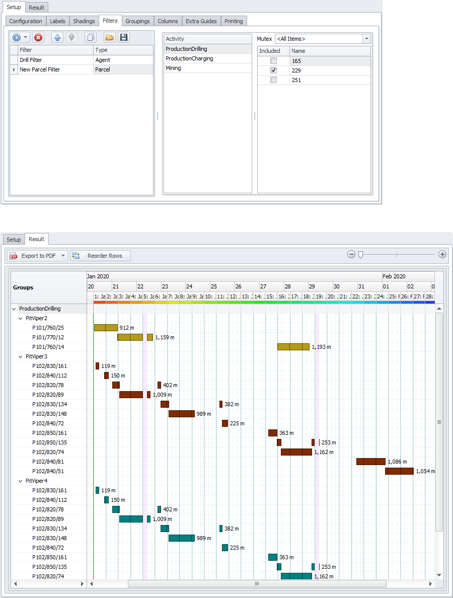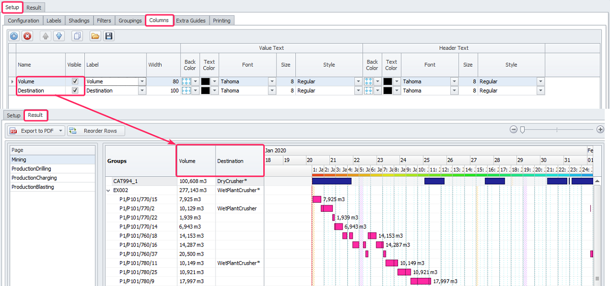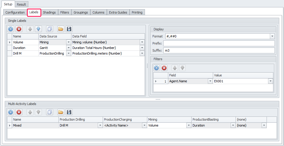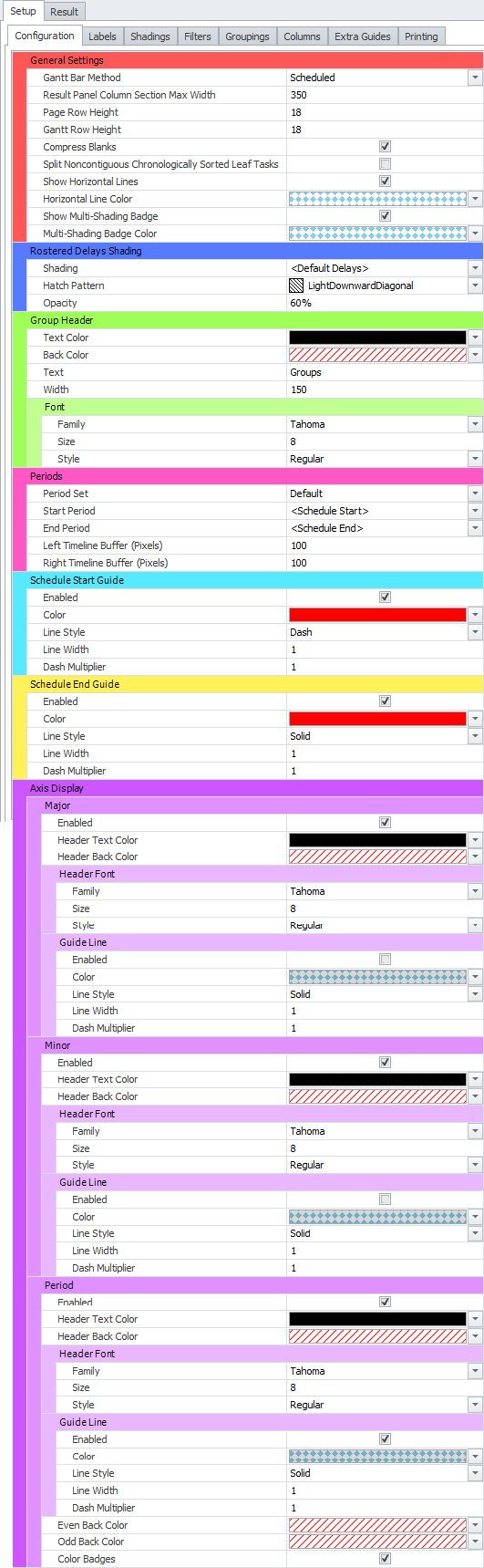 Shadings and Labels settings for Gantt bars in the Result tab. |