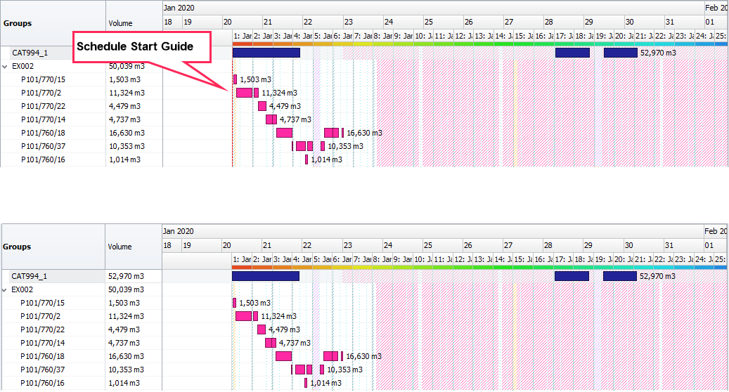 Setting of the red dashed line at the start of the schedule |