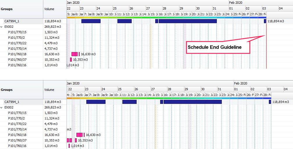 Setting of the red dashed line at the end of the schedule |