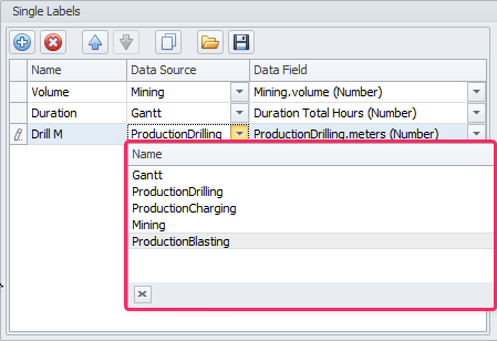 Select labels for each column. Labels are added and configured in the Labels tab.