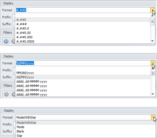Periods display settings in the Result tab |