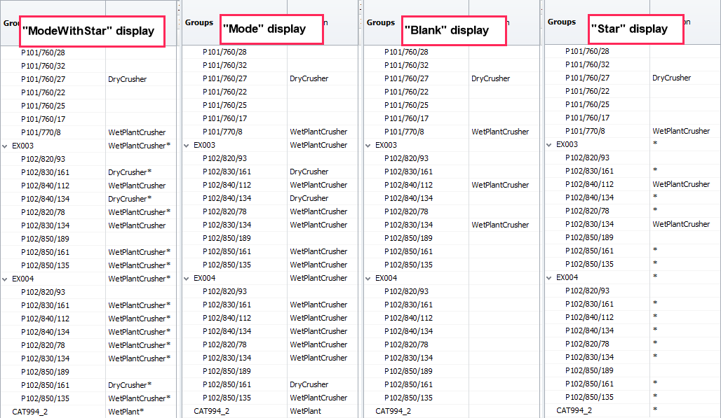 Settings of Groups display in the Results tab |