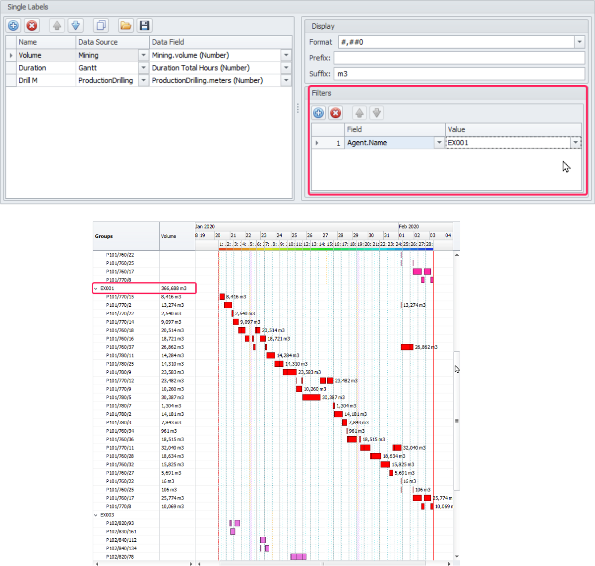Note that in order to display Multi-Activity labels, in the Groupings tab the first Group Set must be “Activity”.