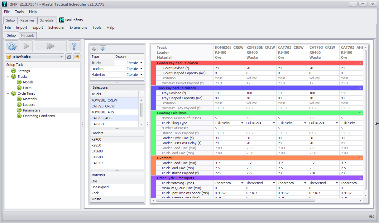 Haul Infinity calculates cycle times from first principles using the payloads, swing times, and in-cycle delays.
