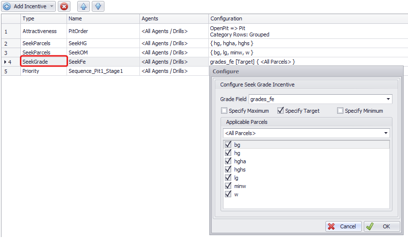 A grade incentive causes an Agent to seek certain grades, everywhere that it mines, throughout the entire period.