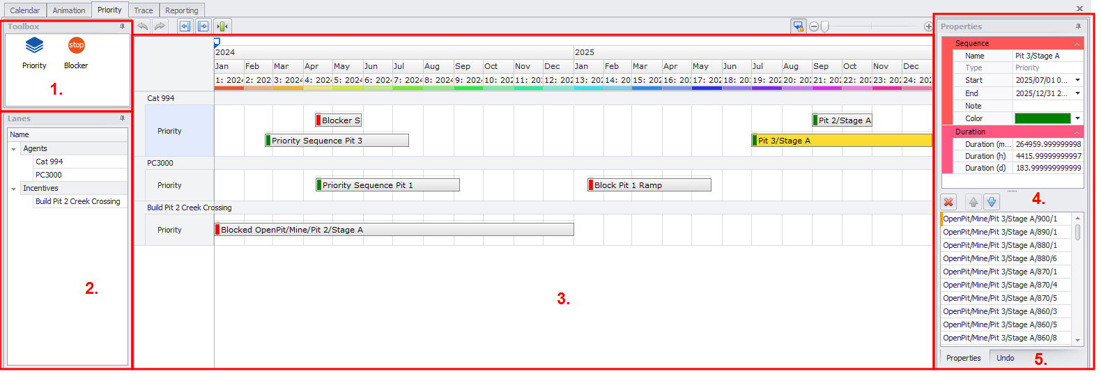The Priority tab provides the ability create and manage priority incentives with a visual Gantt tool.