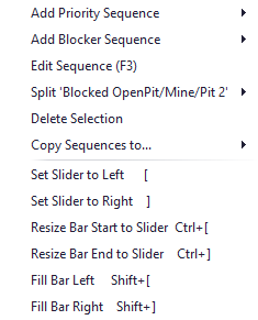 Right clicking on an item in the Gantt provides a list of available context options.