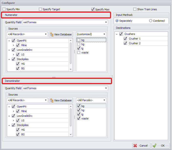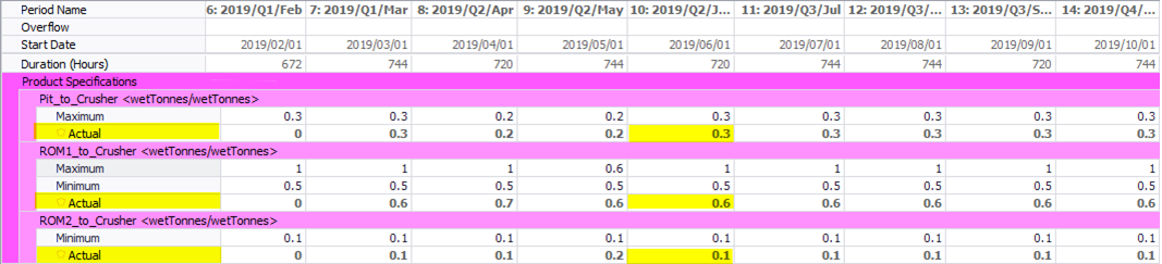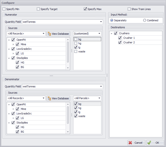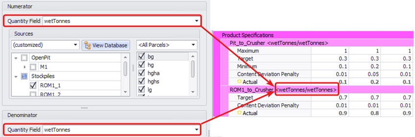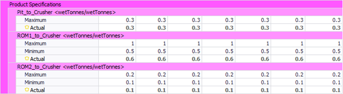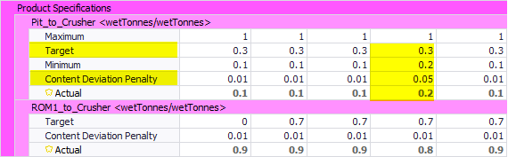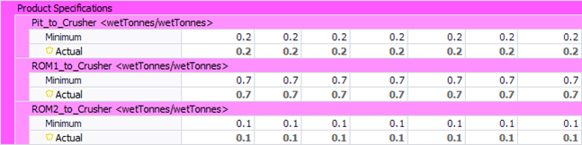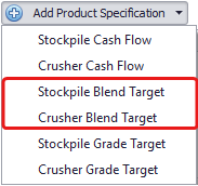 Blend targets allow the user to specify a maximum or minimum ratio of some material sent into a Crusher or Stockpile.