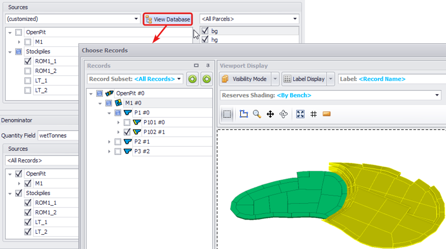 Use the View Database button to open the Choose Records window, where you can graphically select and review the Sources.