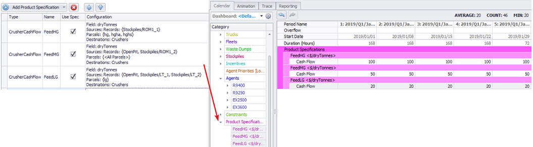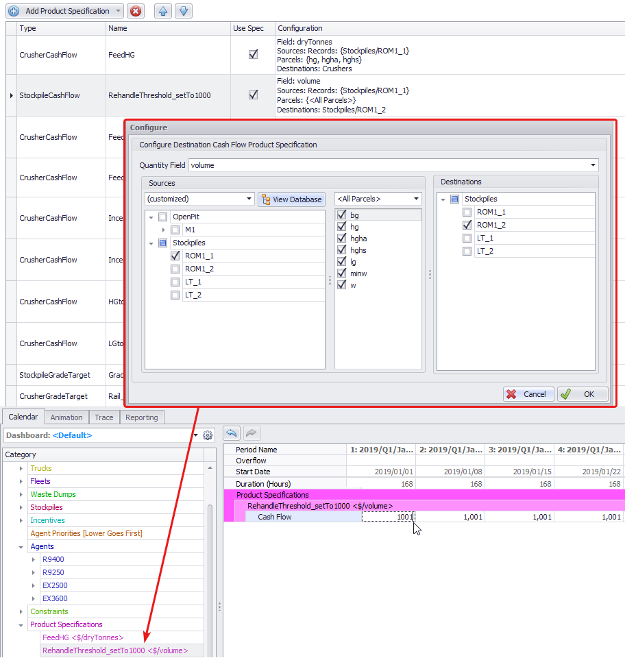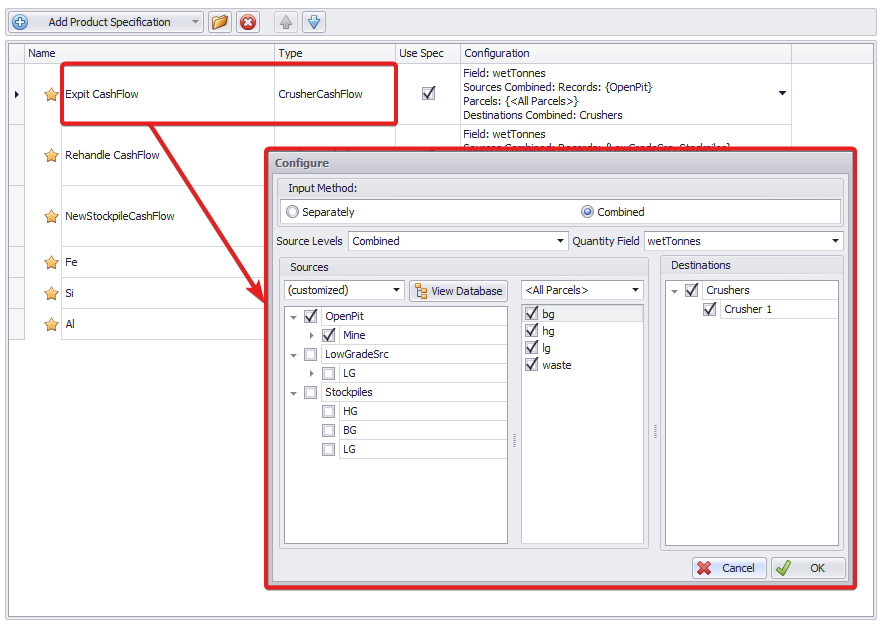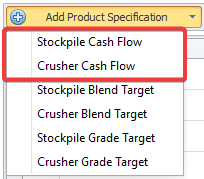 Press Add Product Specification button and from its drop-down select "Stockpile Cash Flow".