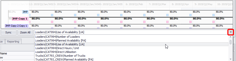 To change the items displayed in the scenarios area, click on the drop-down list on the right of the panel and select the required one.