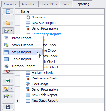 Go to Schedule tab > Reporting tab > Add Report > "Step Report" button.