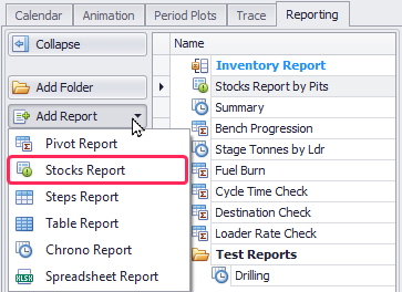 To communicate available stocks per period choose the “Stocks Report” option from Add Report drop-down.