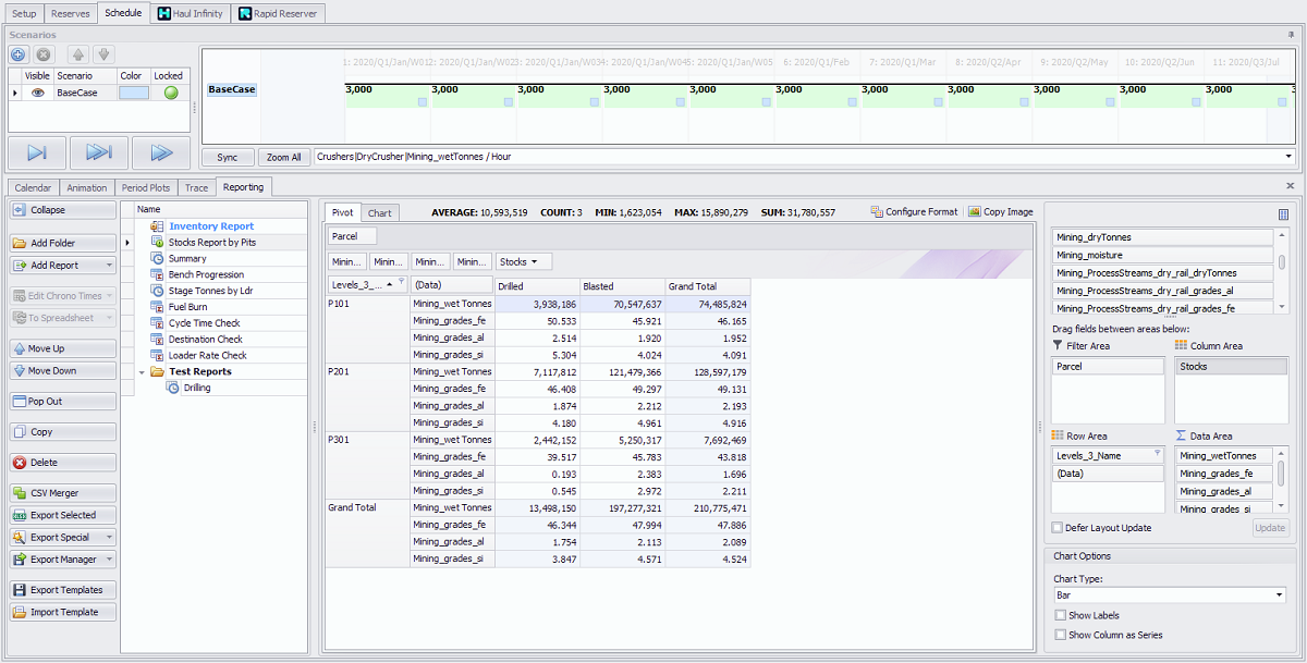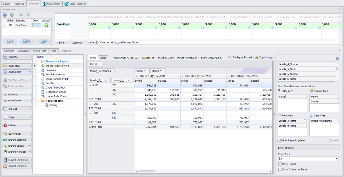 Note, that Stocks Report is only available, if option Use Drills is enabled in the Settings step. It can report on Drilling, Blasting and Mining Stocks